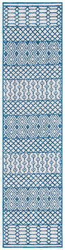 Enhance your living space with the timeless elegance of our Ivory/Navy Bohemian Runner Rug. Expertly crafted in Turkey, this 2'-2" x 9' runner rug boasts a resilient polypropylene pile, constructed using advanced power-loomed technology for precision and durability. The beautiful bohemian design features a versatile pattern that incorporates geometric and tribal motifs, blending harmoniously in hues of ivory and navy to create a visual feast for the eyes.