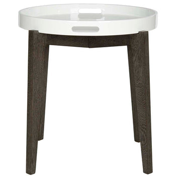 A silent butler for your home, the Ben tray table is as good looking as it is hard working. A removable white lacquer wood tray sits atop a grey washed base ready to be of service. This clean lined table is ideal for transitional and contemporary rooms.