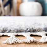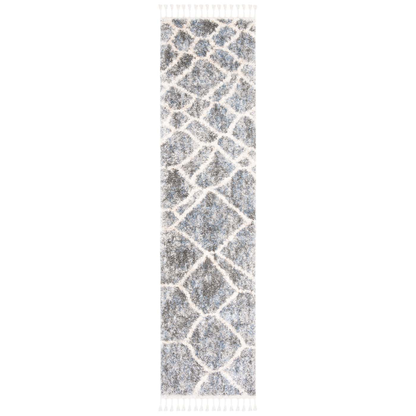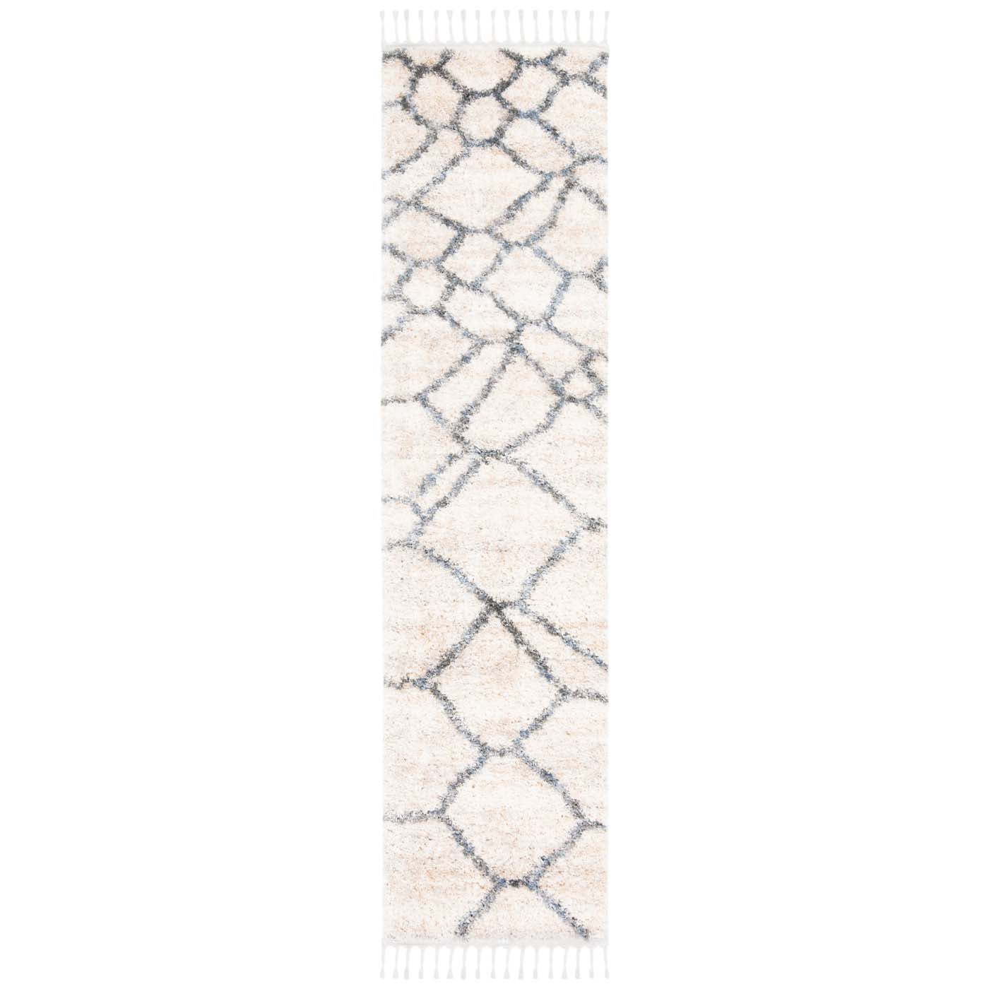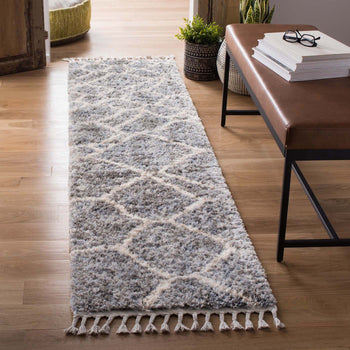 Elevate your home with the timeless sophistication and plush comfort of our 2' X 8' Grey/Cream Runner Area Rug. Expertly crafted in Turkey using a power-loomed technique, this shag & flokati style runner is an epitome of enduring elegance and luxurious feel underfoot, with a pile height of a generous 1 1/8 inches.