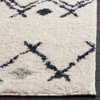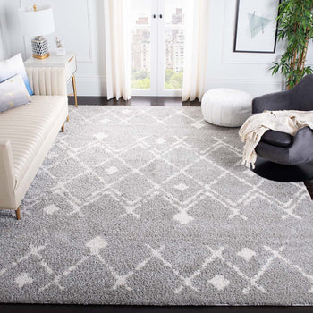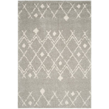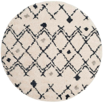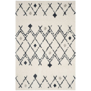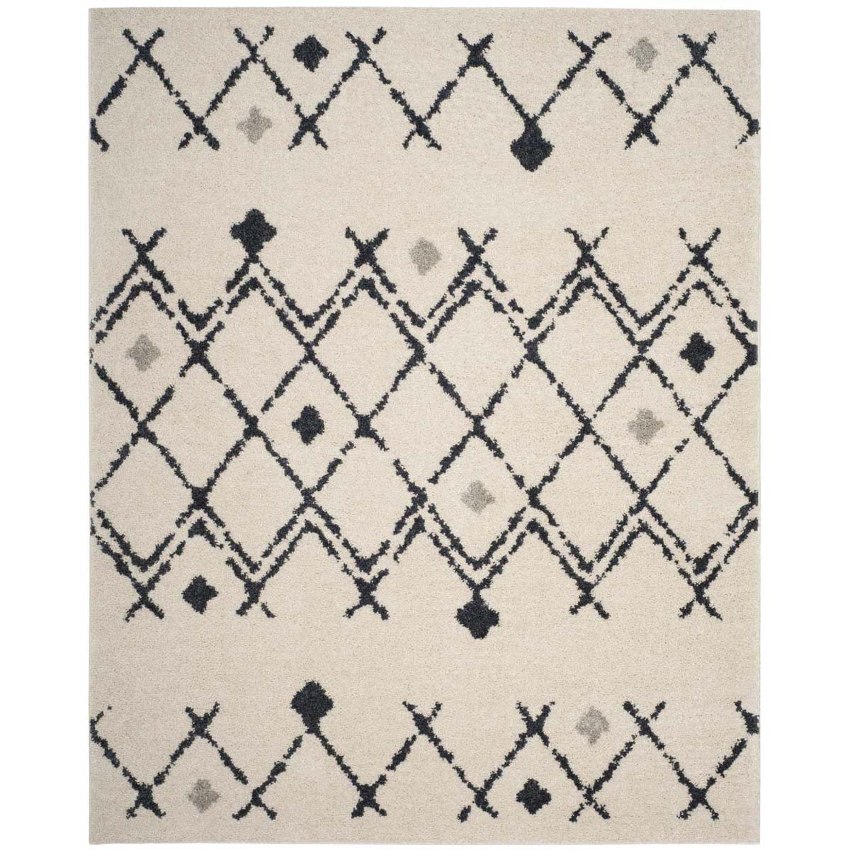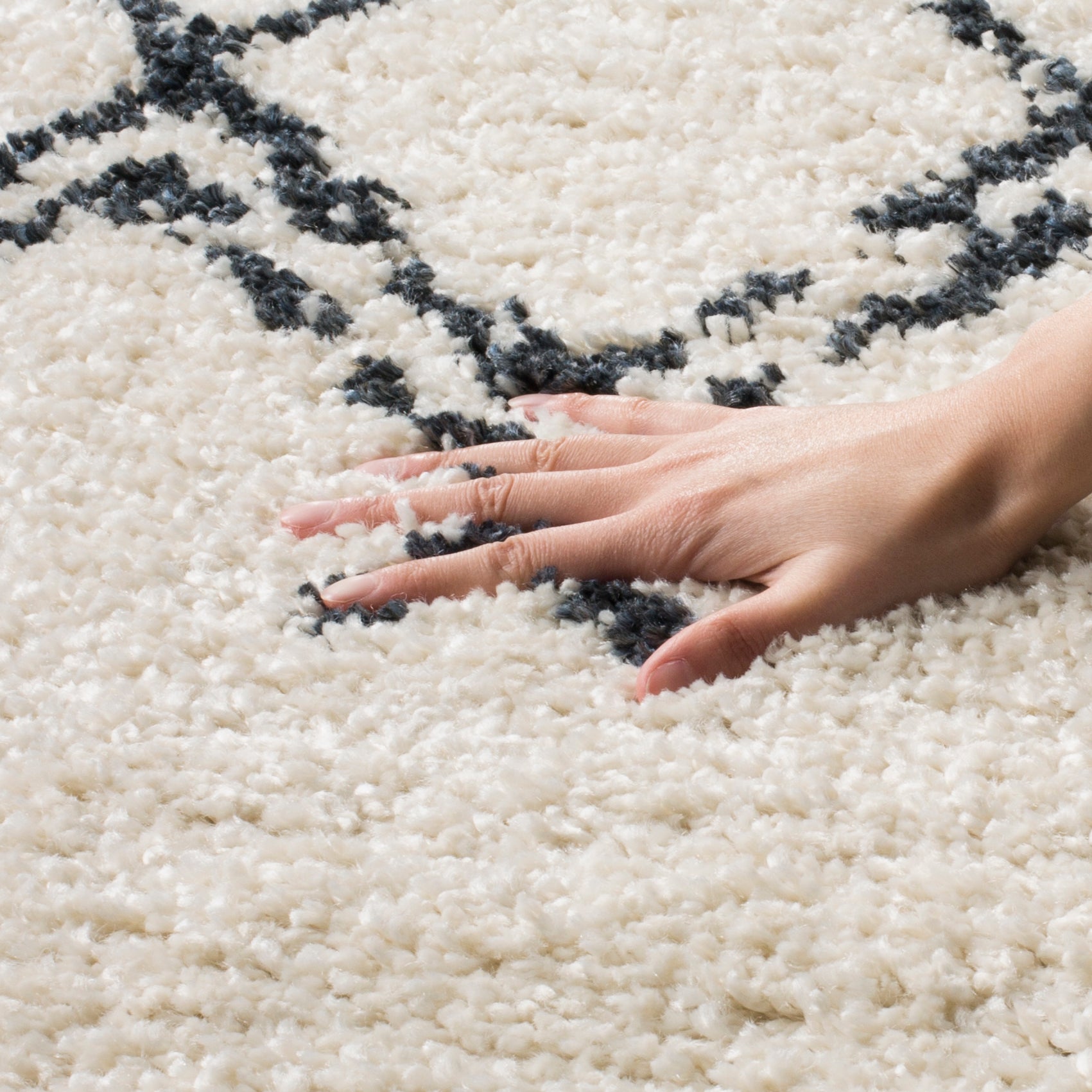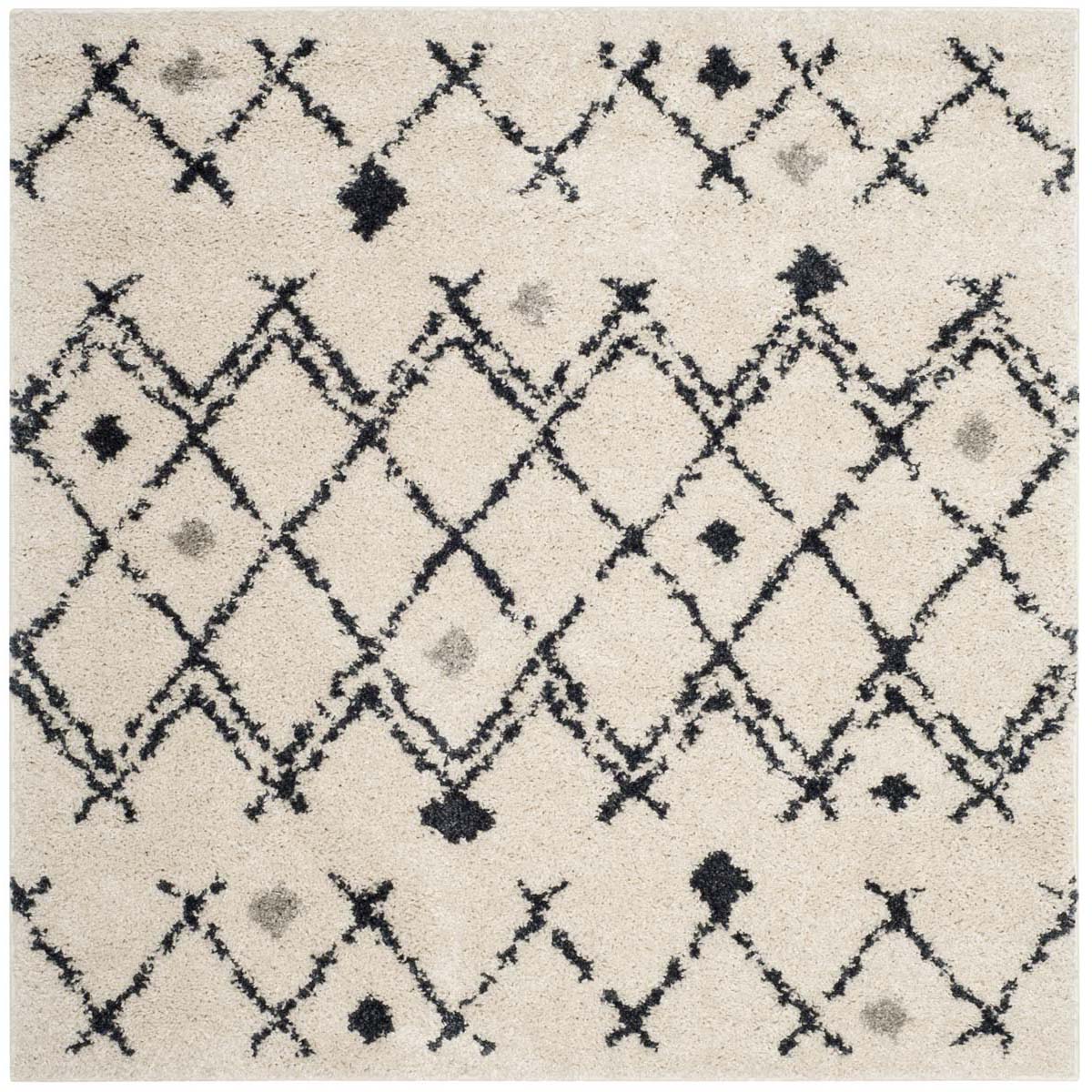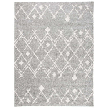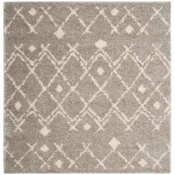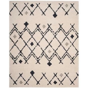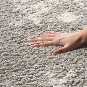 Featuring a chic Ivory and Dark Grey color palette, our rug is adorned with an eye-catching pattern that exudes a timeless Shag & Flokati style. The design showcases an intricate array of geometric shapes and lines, creating a dynamic visual appeal that will complement any contemporary home decor.