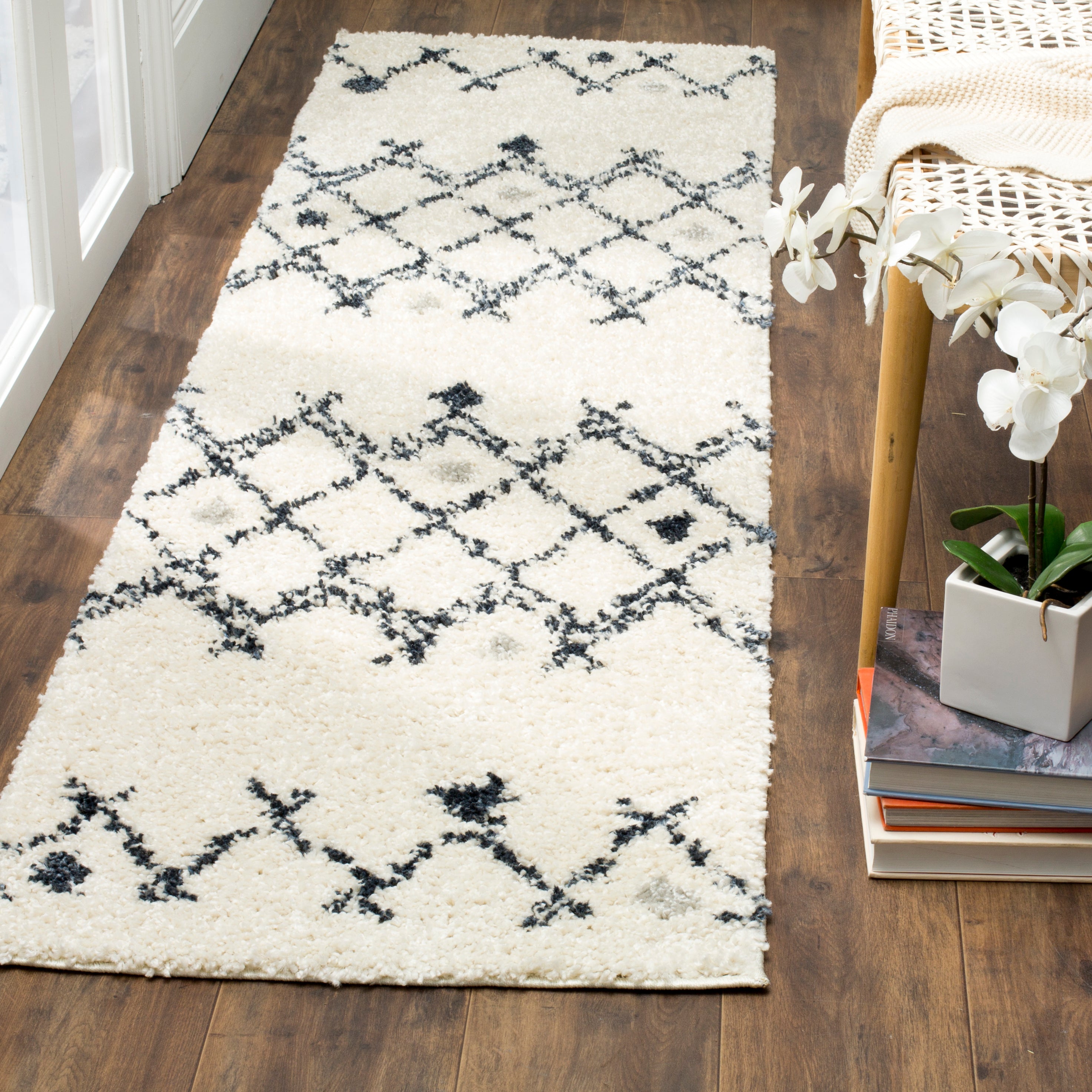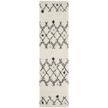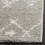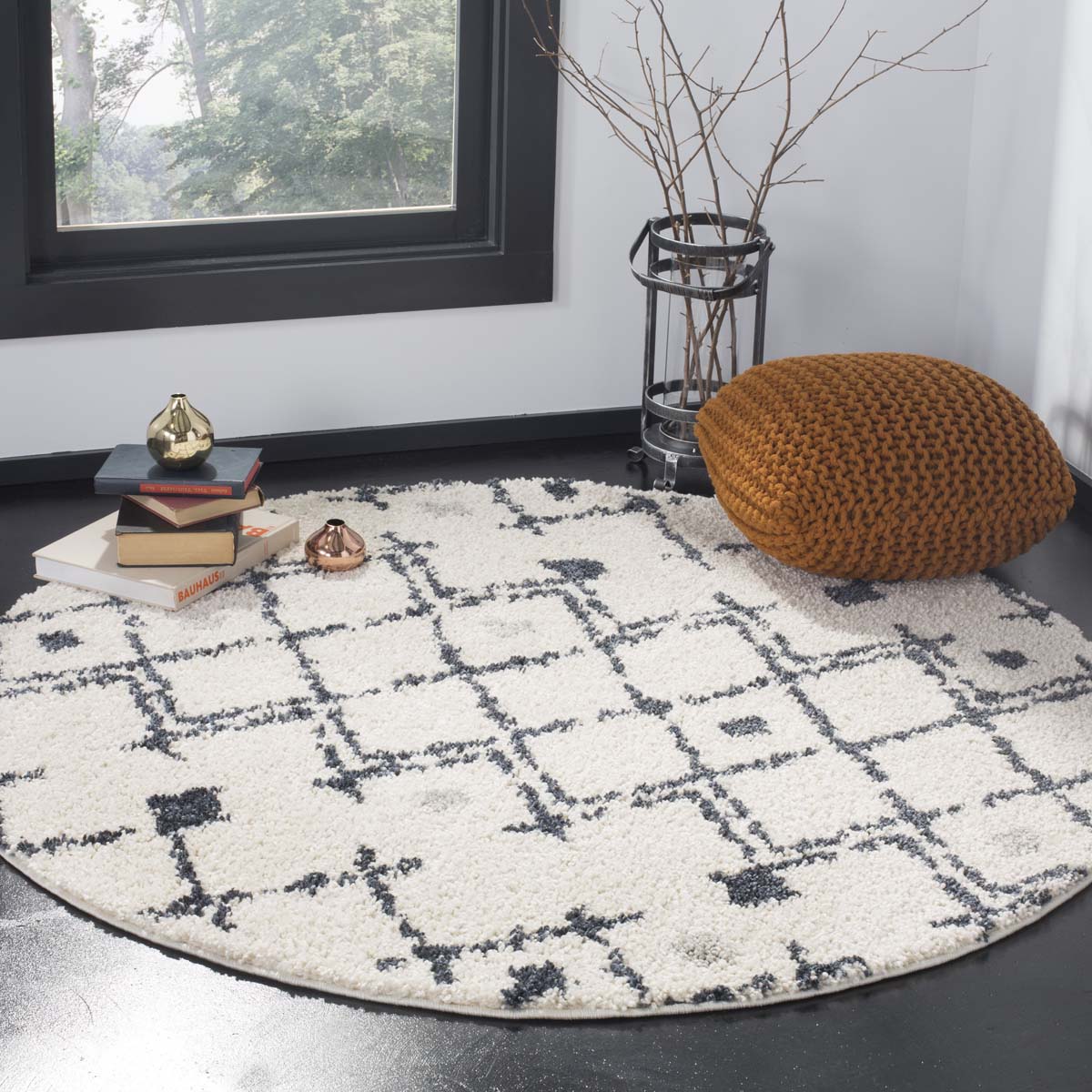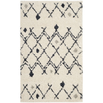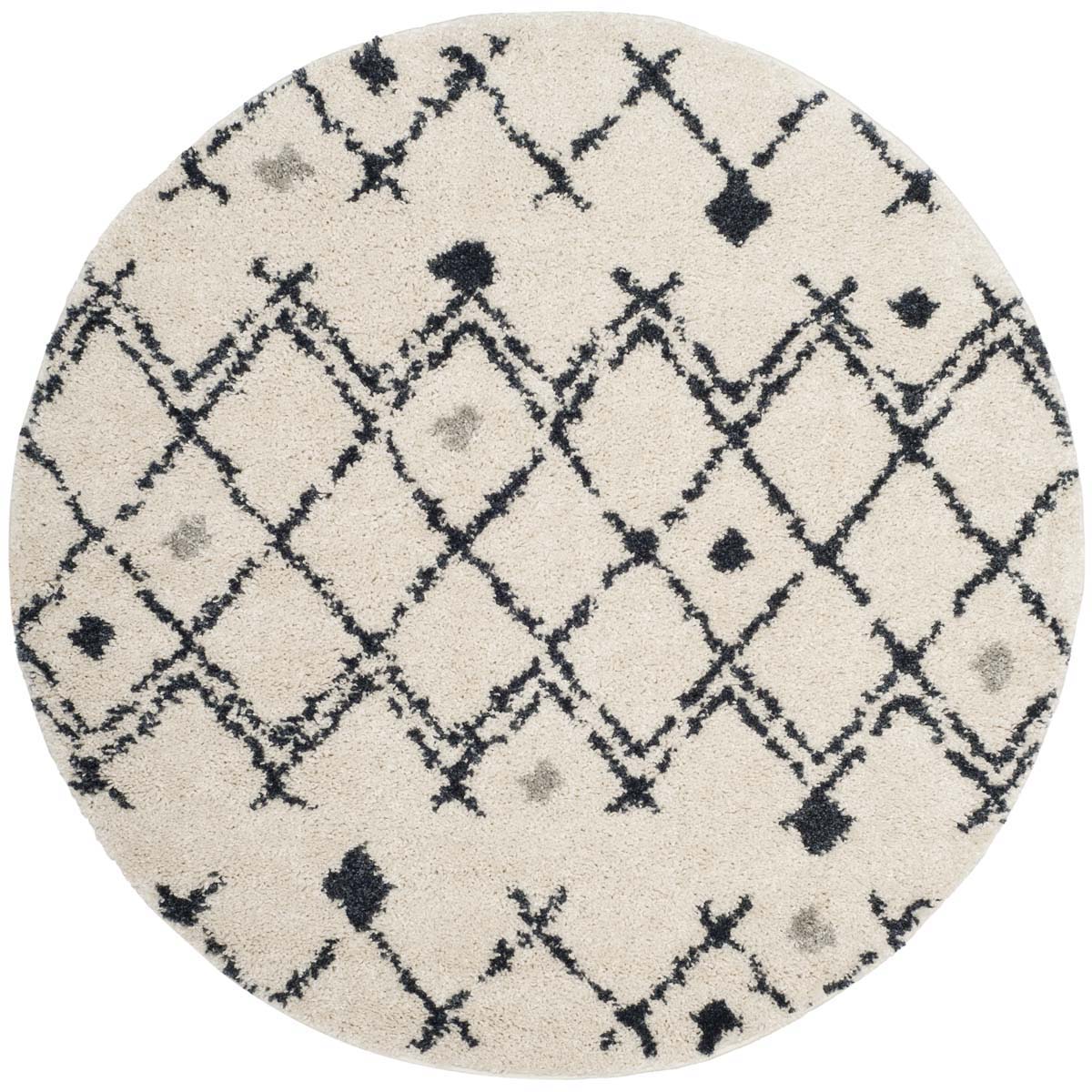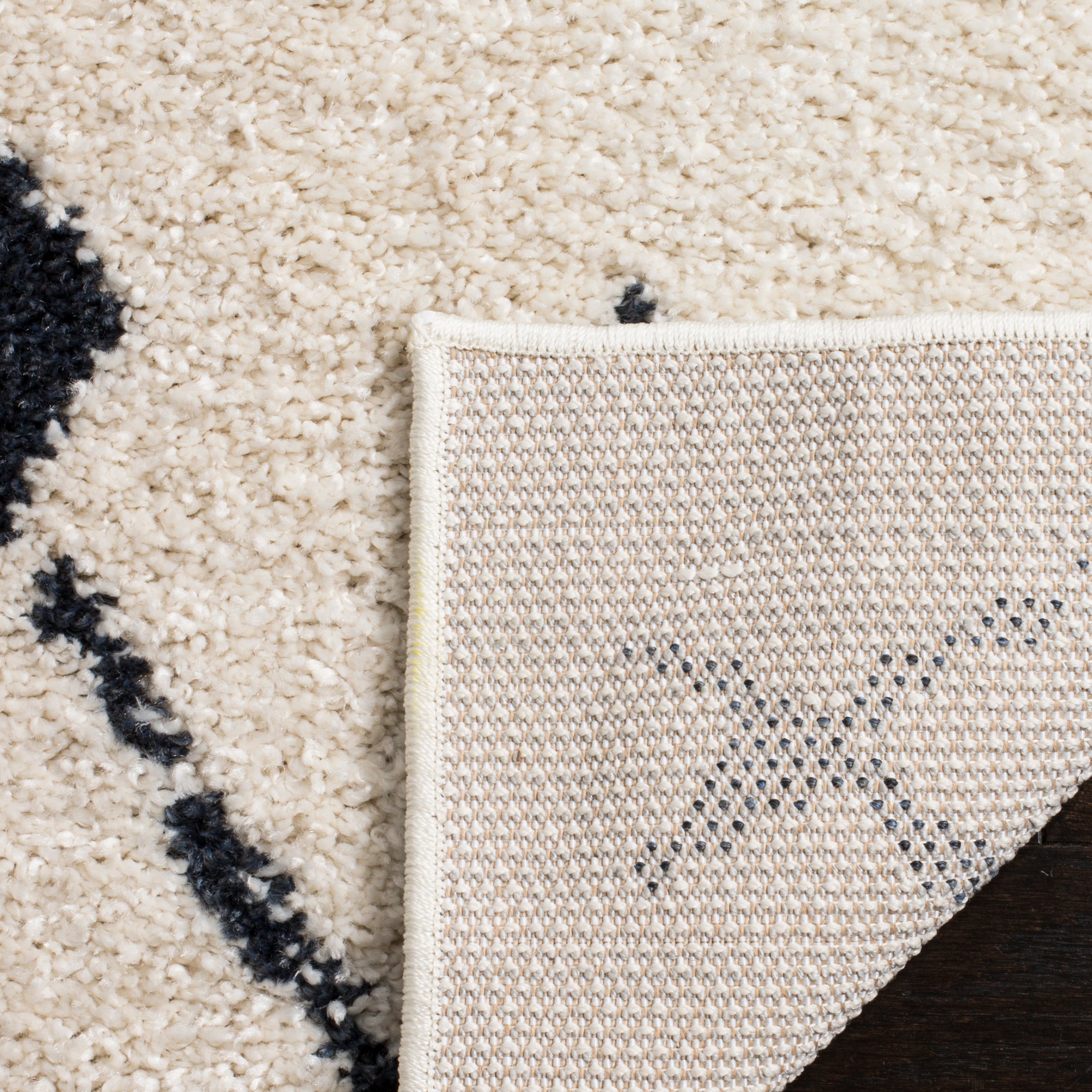 Featuring a chic Ivory and Dark Grey color palette, our rug is adorned with an eye-catching pattern that exudes a timeless Shag & Flokati style. The design showcases an intricate array of geometric shapes and lines, creating a dynamic visual appeal that will complement any contemporary home decor.