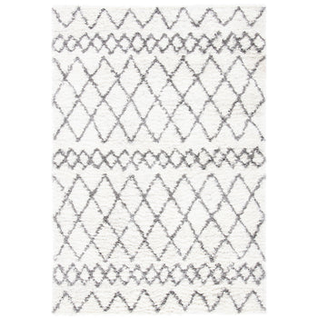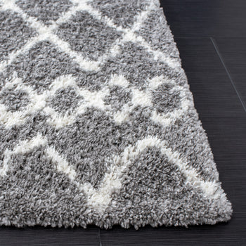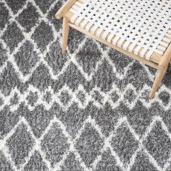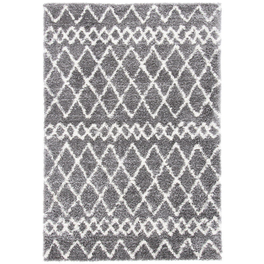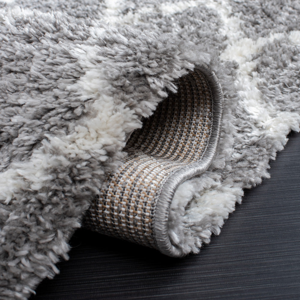 Adorned with a tasteful shag and Flokati style, the rug showcases a beautiful diamond pattern that exudes a cozy, inviting ambiance. The chic grey and ivory color palette is versatile and on-trend, harmonizing with a range of interior color schemes.