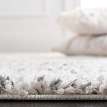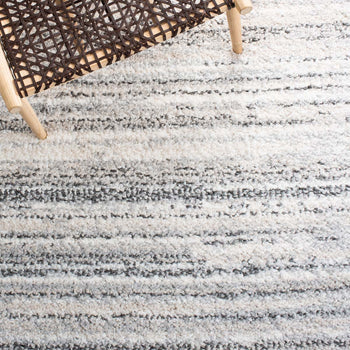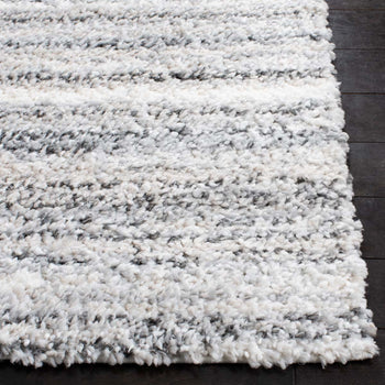 Our rug's muted grey and ivory hues are woven into a subtle, linear pattern that seamlessly blends with a variety of decors, from modern to traditional. With its shag & flokati style, this rug adds a touch of sophistication and undeniable warmth to any space.