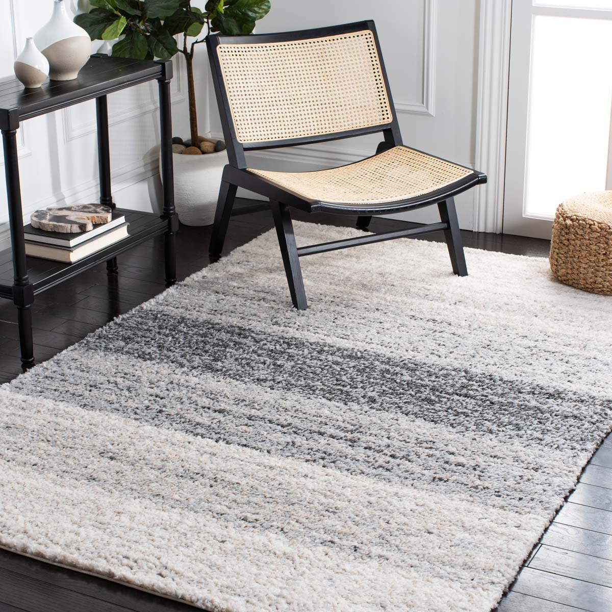 The refined color palette of grey and charcoal effortlessly complements your existing d?cor, while the nuanced striped pattern adds depth and visual interest to your floors. The elegant gradation of hues creates a serene atmosphere that is both modern and timeless.