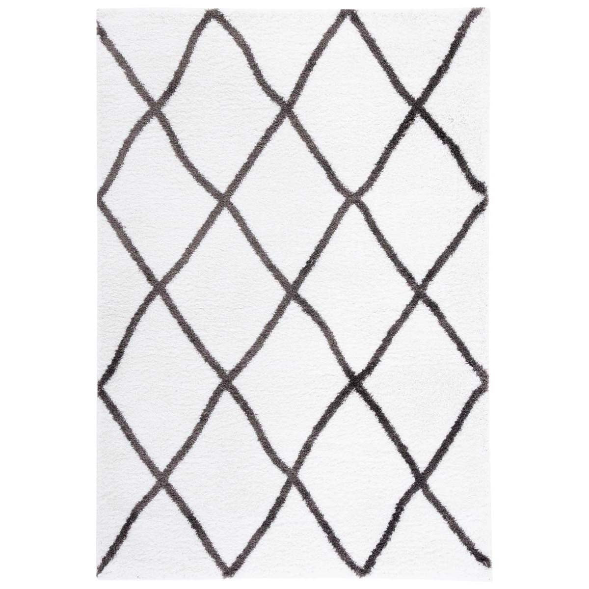 Expertly constructed using a Flat Weave technique and made from premium-quality polyester, this rug promises durability and easy maintenance, making it an ideal choice for high-traffic areas or homes with pets and children. The timeless diamond pattern captured in the image, rendered in a chic grey against a crisp ivory background, provides an eye-catching contrast that will complement a variety of decors, from modern to traditional.
