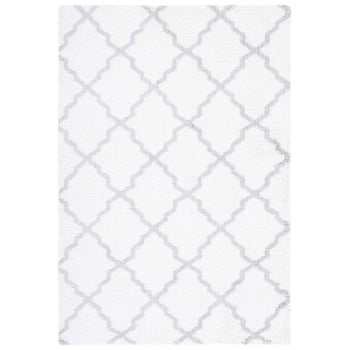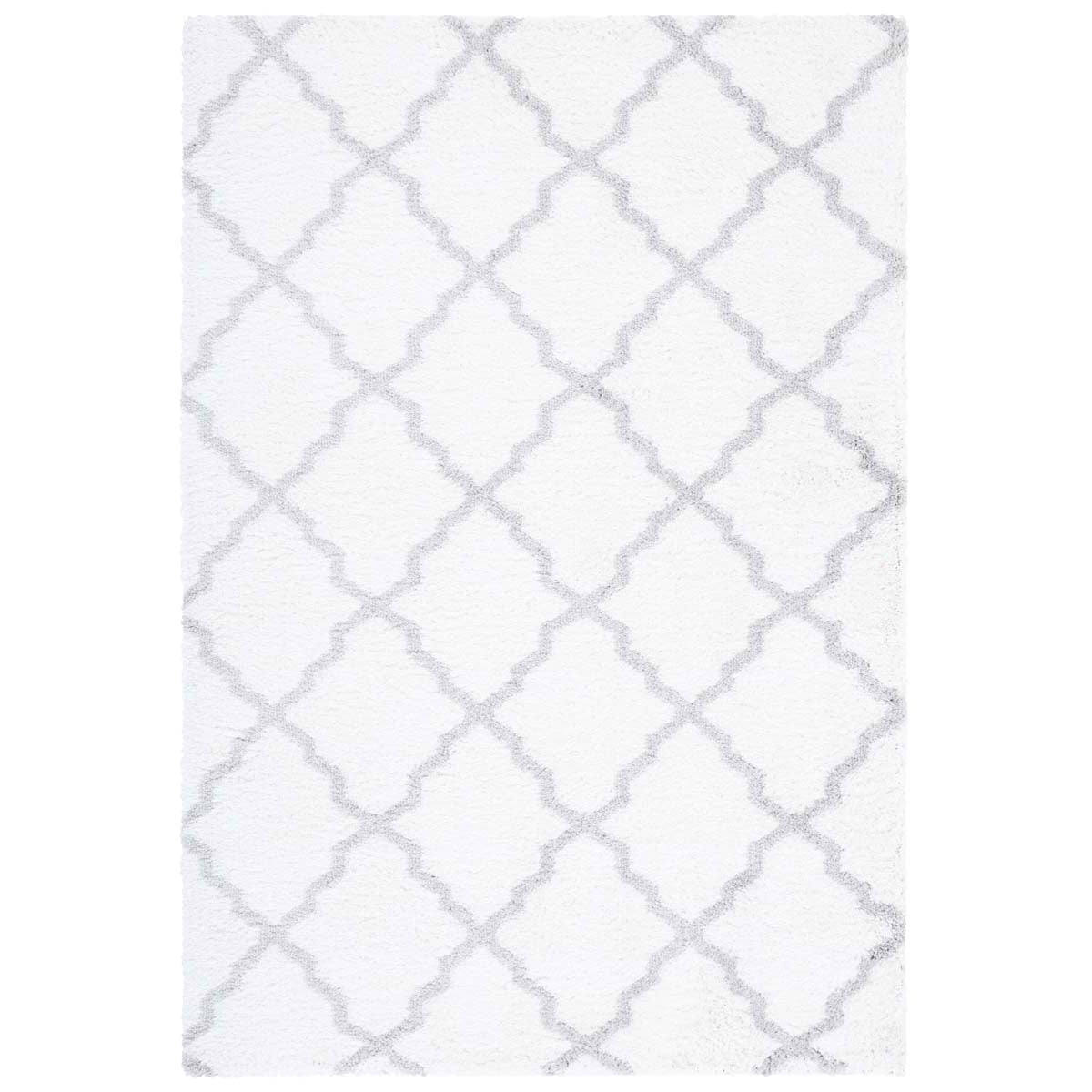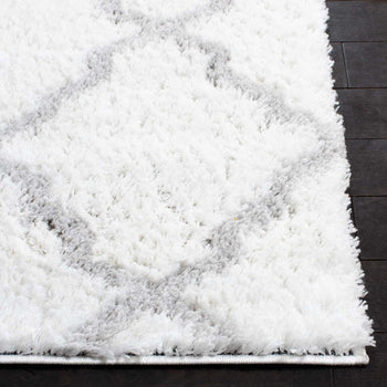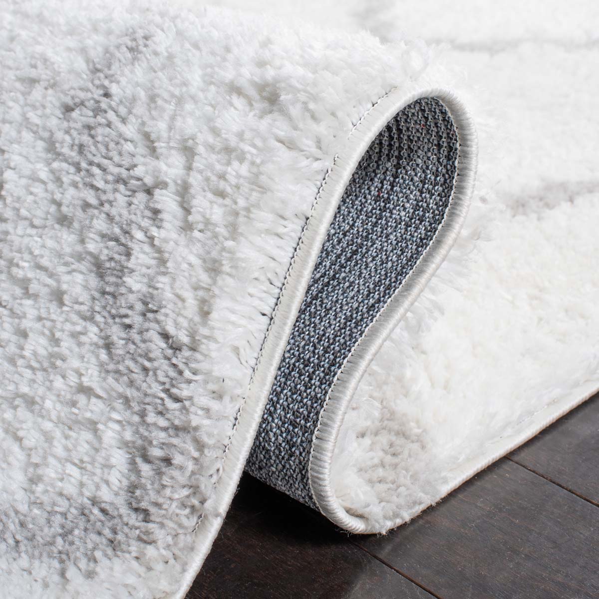Adorned with a timeless ivory and light grey color palette, our contemporary shag rug features an elegant flat weave construction made from high-quality polyester. The chic diamond trellis pattern enhances any room, offering a sophisticated and modern aesthetic that complements a variety of decor themes.