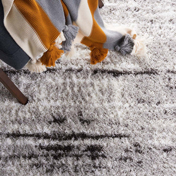Elevate your living space with the luxurious aesthetic of our contemporary shag-style area rug, sized perfectly at 4 feet 5 inches by 6 feet 5 inches to complement any room. With an inviting palette of grey and dark grey, this small rectangle rug boasts a versatile Flat Weave construction, meticulously crafted from high-quality polyester for durability with a plush 1 1/4 inch pile height.