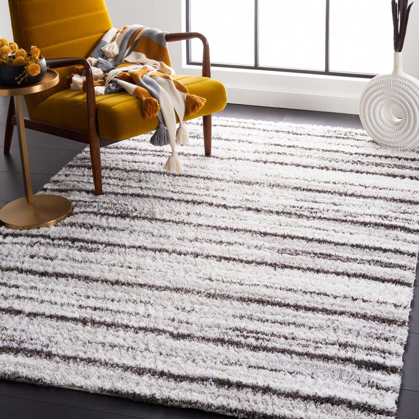 The area rug's linear pattern, as displayed in the image, provides a captivating visual rhythm that complements both minimalist and vibrant interior d?cors. The soothing color palette promotes a tranquil atmosphere while injecting a dash of elegance into your living space.
