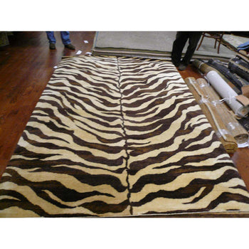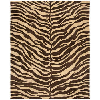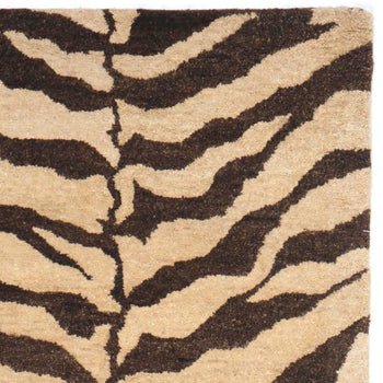 The luxurious wool construction ensures a soft, plush feel underfoot, making it an inviting addition to any room. Celebrating the natural allure of the wilderness, the rug features a striking zebra pattern that brings a touch of wild sophistication to your decor. The neutral beige and earthy brown hues create a harmonious balance, offering a refined aesthetic that easily complements a variety of interior styles.