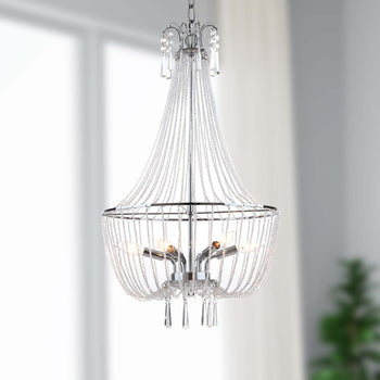 This contemporary chandelier was inspired by the interiors of the newly launched design hotel in Berlin. Its radiant polished metallic finish is juxtaposed with clean lines of chic crystal beading and ?ber modern interior lights.