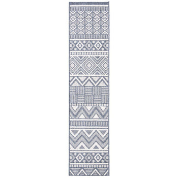 Elevate your space with this Cream/Navy Geometric Runner Rug and add a touch of sophistication to your home or outdoor area. Get ready to transform your living space with this low
