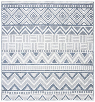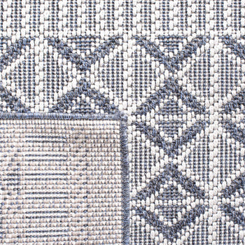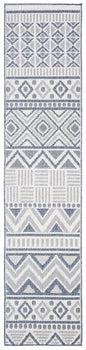 Introducing the epitome of modern elegance with our exquisite 2' X 6' Cream/Navy Geometric Indoor/Outdoor Runner Rug. Meticulously crafted in Turkey using state-of-the-art Power Loomed techniques, this runner rug is a paragon of durability and style. Constructed from high-quality polypropylene, this rug boasts a low pile height of 1/4", making it perfect for high-traffic areas while maintaining its shape and texture over time.