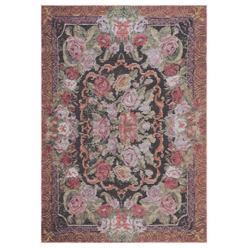 Crafted with meticulous precision, the rug exhibits a harmonious blend of black, sage, and rust tones, set in a captivating traditional pattern that echoes the artistry of time-honored designs. The intricate detail, visible in the provided image, showcases a combination of ornamental motifs that will undoubtedly add character and depth to your home.
