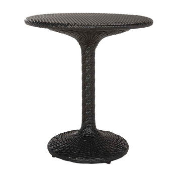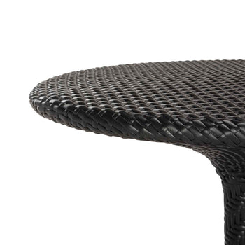 Ideal for a romantic rendezvous, this contemporary rattan bistro side table is a must have. Inspired by the classic French design, this modern update features an elegant black hue and soft geometric design. Pair with matching chairs to complete the look.