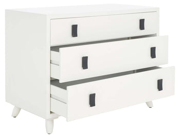 This Retro-Chic Blaize Chest Offers A Contemporary Spin On Vintage Style. Ideal As A Nightstand Or As A Chest In The Living Room, Its Clean White Finish Complements Any Decor, And Its Black Metal Hardware Adds A Touch Of Industrial Luxe To Its Three Spacious Drawers.