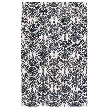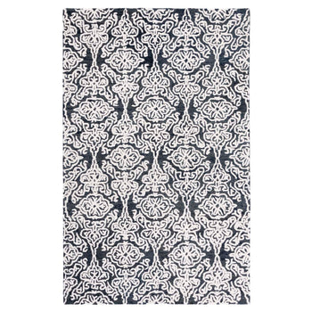 The design of the rug, as shown in the image, features an intricate and sophisticated pattern resonating with a timeless aesthetic. The carefully curated color palette exudes a serene ambiance, making it remarkably versatile for various decor styles, from classic to contemporary.