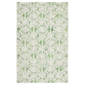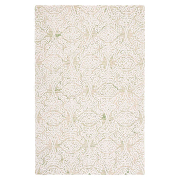 Introducing our exquisite 2' X 3' accent area rug, a harmonious blend of light green and ivory hues crafted to enhance any space with its elegance. Each rug is meticulously hand-tufted by skilled artisans in India, reflecting the unmatched craftsmanship and rich textile heritage of the region.