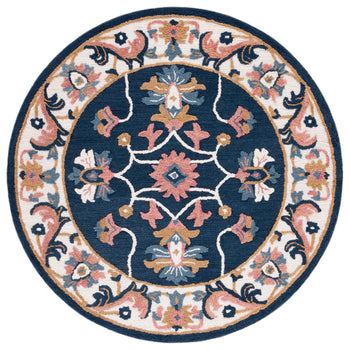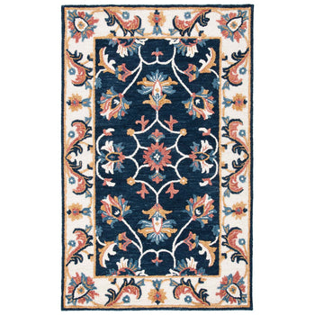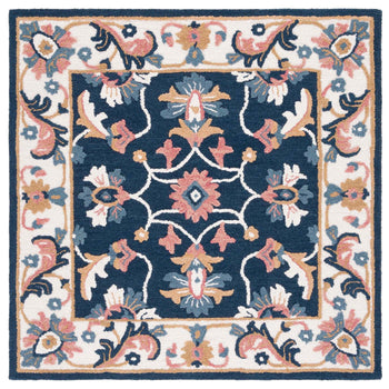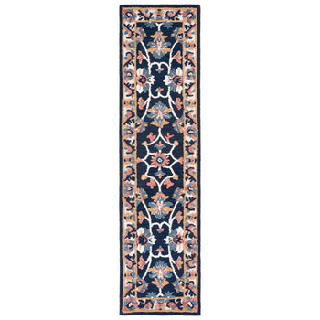 This runner is a true masterpiece with its rich blue and ivory color scheme. Its design features a timeless floral pattern, intricate botanical motifs that gracefully meander across a deep blue canvas, punctuated by soft accents of ivory, coral, and pale blue. These colors combine harmoniously to evoke serenity and sophistication, an effortless complement to both contemporary and traditional interiors.
