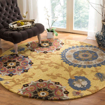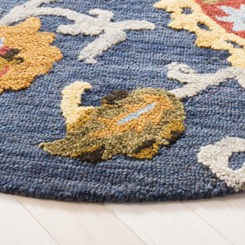 Embrace the rich navy backdrop, complemented by a mesmerizing multi-color pattern that captures the essence of timeless elegance. Artisans in India have meticulously tufted each rug by hand, creating a unique piece that is as durable as it is beautiful.