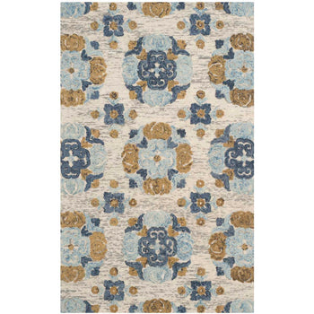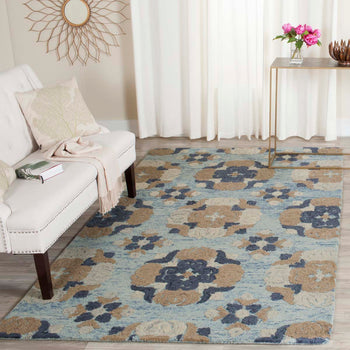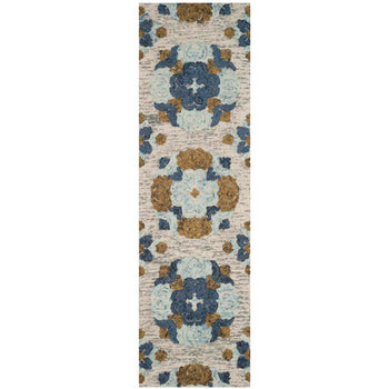 Crafted from the finest wool, this runner rug features a harmonious beige base that is both neutral and warm, providing the ideal backdrop for its captivating multi-colored pattern. Floral motifs in varying shades of blue and touches of rich golden hues create a visual feast, bringing a sense of luxury and depth to your floors.