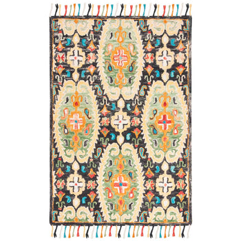 Introducing our exquisite Hand Tufted Wool Accent Rug, sized 2' X 3', a perfect fusion of traditional artistry and modern elegance, crafted with the highest quality wool and originating from the rich textile heritage of India. This area rug is a true testament to the skill of artisanal work, highlighted by its charcoal foundation intricately adorned with luxurious gold flourishes.