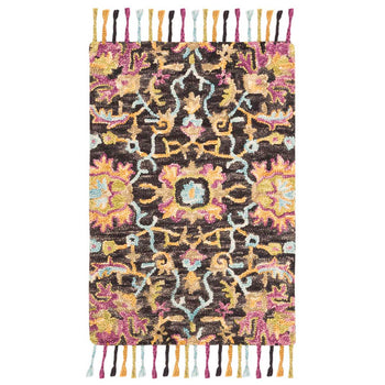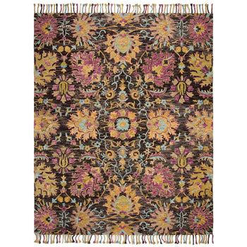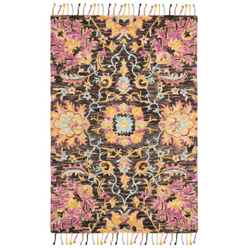 Crafted from the finest wool, this rug boasts a plush feel and a durability that withstands the test of time. The hand-tufted construction ensures each piece is unique, with attention to detail that brings the intricate charcoal and multi-colored pattern to life. This rug features a dynamic motif, with a sophisticated charcoal base elegantly punctuated by a spectrum of vibrant hues that create a captivating, multidimensional appearance.