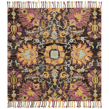 The rich tapestry of colors and the classic design, enhanced by the playful fringe edges, make this rug a versatile addition to your space. Whether it's anchoring your entryway, adding comfort to a bedside, or accenting a cozy nook, this rug makes a statement of luxury and craftsmanship.