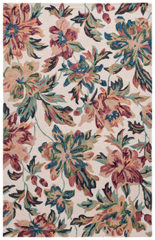 Boasting a breathtaking floral style, the rug's pattern dances with vibrant hues of plum, rich ivory, and a spectrum of complementary colors that evoke the beauty of a blooming garden. The botanical design, captured in the image provided, will be consistent in your 3' X 5' rug, ensuring the allure and grace of the pattern remains the centerpiece of your decor.