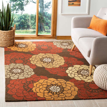Crafted with meticulous care in India, this rug showcases a stunning array of red and brown hues, featuring an eye-catching array of layered floral patterns that exude a sense of depth and texture. Each bloom is intricately defined, creating a harmonious symphony of color that can anchor your space or complement your existing d?cor.
