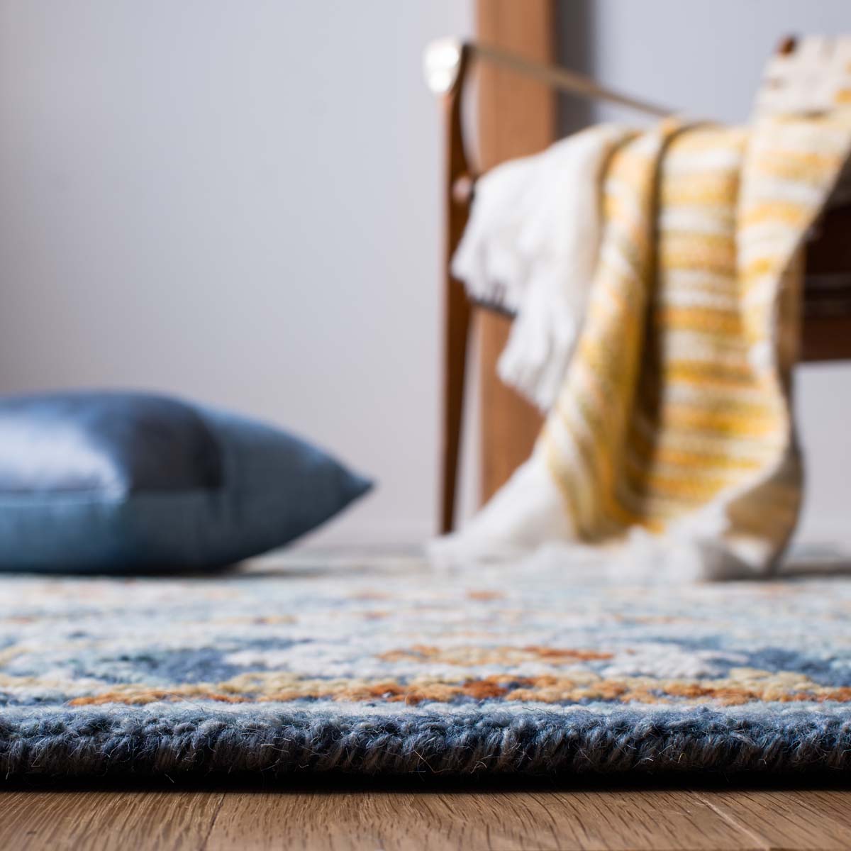 Crafted from a premium blend of 80% Wool and 20% Cotton, this rug offers both the warmth and natural moisture-wicking properties of wool alongside the softness and strength of cotton. The navy and yellow hues accentuate the Country & Floral style, bringing a vibrant yet sophisticated charm to your decor.
