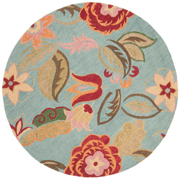 The delightful array of colors includes rich reds, warm neutrals, soft pinks, and inviting yellows, all harmoniously set against the calming blue background, bringing life and cheer to any room. Made from premium wool, this rug delivers durability and a soft touch, making it a luxurious addition for high-traffic areas or a cozy highlight in a private nook.