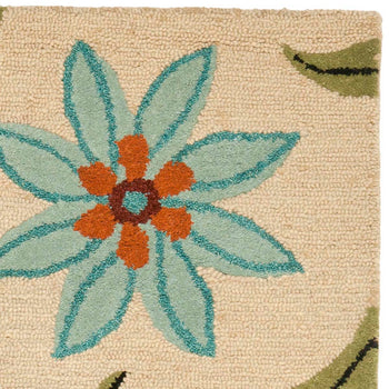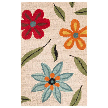 The time-honored technique used to create this rug has captured the beauty of a charming floral pattern. The beige backdrop provides a neutral canvas that showcases the lively multi-colored blossoms in shades of warm red, sunny orange, and cool blue, with hints of green foliage accents. The bold flowers pop against the subtle beige, offering a versatile design that complements both contemporary and classic interiors.