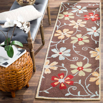 The beautiful botanical design is a testament to the remarkable hand-hooked construction technique, resulting in a piece that is not only visually appealing but also capable of withstanding the test of time. Meticulously made in India, this rug is a true labor of love, reflecting the region's long-standing tradition of rug making.