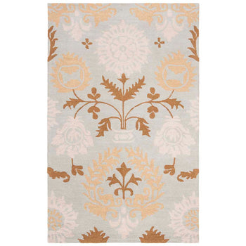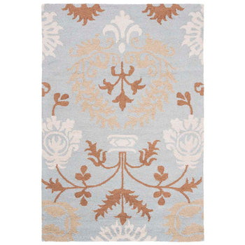 Take a closer look, and you'll appreciate the intricate pattern this rug boasts. The design features a graceful floral motif that dances across a soothing blue background. Its botanical elements are depicted in tasteful shades, creating a harmonious visual appeal that is both inviting and captivating.