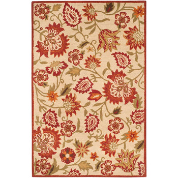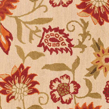 Adorned in a serene beige base, the rug is brought to life with a multi-colored palette that includes hints of red, orange, green, and brown. This vibrant yet subtle combination ensures that the rug will complement a wide range of decors, adding warmth and texture to your home.