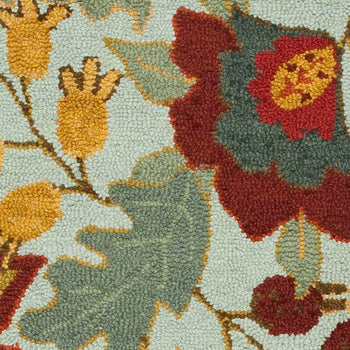 Introducing our exquisite Hand-Hooked Wool Accent Rug, sized at a versatile 2'-6" X 4' and boasting a plush 3/8" height. This stunning piece is a testament to the unparalleled craftsmanship of Indian artisans, featuring a mesmerizing floral pattern rich with hues of blue, red, and multiple complementary colors that bring a harmonious splash of vibrancy to any space.