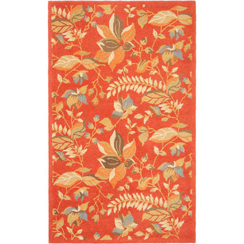 With a rich rust base color that exudes warmth, this rug is adorned with a harmonious multi-colored pattern showcasing intricate botanical motifs that create an inviting and detailed aesthetic. The lively design presents an array of earthy tones intermingled in a charming floral display that is sure to captivate and add a sophisticated flair to any room.