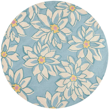 Elevate your living space with the enchanting charm of our Hand-Hooked Wool and Cotton Rug, a blend of timeless artistry and modern comfort. This 3' X 5' small rectangle-shaped area rug boasts a delightful pattern featuring light blue and ivory hues, accented by subtle hints of yellow and pink at the flower centers, creating a vibrant yet soothing visual experience for any room.