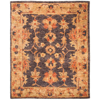 Whether you're looking to enhance your living room, bedroom, or any other space in need of a touch of luxury, this rug's unique blend of colors and traditional patterns is sure to impress. Its natural hemp material adds an earthy, organic touch to your home, while the rich palette of charcoal and gold creates a warm, inviting atmosphere.