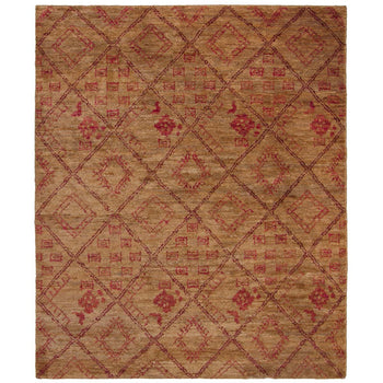 Introducing our exquisite hand-knotted area rug, a timeless addition to any living space. Expertly crafted in India, this 4' x 6' small rectangle area rug boasts an inviting 3/8" pile height that offers both comfort and durability. The natural and red color palette exudes warmth, making it an immediately eye-catching centerpiece for your room.