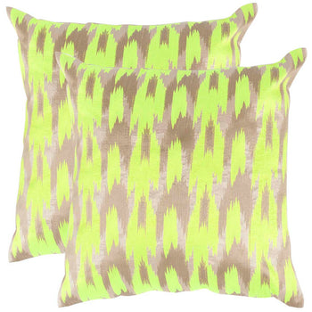 Globally inspired, the set of two Boho Chic pillows in neon citrus imbues the trend to ikat and ombre fabric patterns in couture fashion. A great pick me up for transitional and traditional rooms, their polyester covers are lustrous and vibrant.