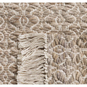 Enhance your living space with this exquisite 3' x 5' Small Rectangle area rug, meticulously handcrafted in India. Its classic beige and ivory hues blend seamlessly into any decor, while the sophisticated flat weave construction offers both durability and comfort underfoot. The pure cotton material not only provides a soft touch but also ensures ease of maintenance for a busy lifestyle.