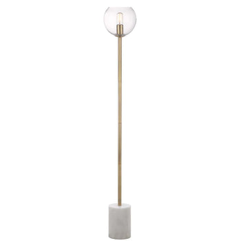 Inspired by minimalist Scandinavian style, this contemporary floor lamp brings instant character to the living room. The industrial style of its single bulb lends a dramatic glow, while its gold finish adds warmth. Designers love its posh white base.