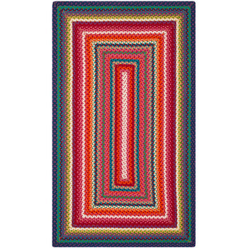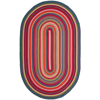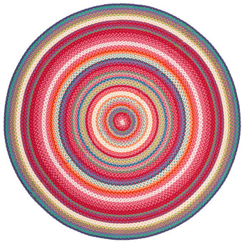 Designed to enchant at first sight, the rug displays a vibrant MULTI-colored braided style that blends practicality with artisan charm. This made-in-China marvel is both stylish and versatile, perfect for various decorating styles. The concentric braided pattern radiates from the center, exuding a sense of harmony and warmth. Embracing hues of red, teal, yellow, and an array of other cheerful colors, the round rug offers a playful yet sophisticated appeal to any space.
