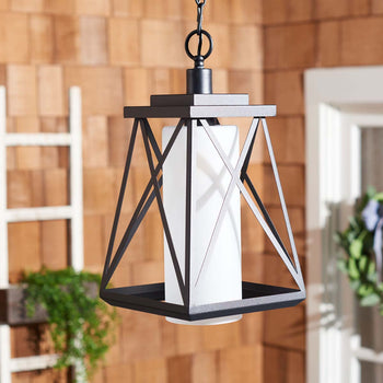 Bring industrial charm to your outdoor living area with Braith outdoor pendant. Its striking silhouette and classy black metallic details remain the perfect fit for your contemporary home. With a downward-facing bulb, the pendant delivers a filtered and even layer of illumination to your desired area. Our bold and stylish pendant light is the perfect way to brighten and beautify your front porch, patio, or veranda.