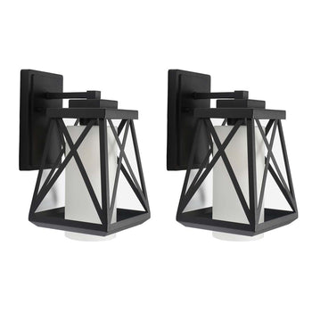 Add industrial charm to your home with Braith outdoor wall sconces. Diagonals intersect to create a geometric and eye-catching design. Its striking silhouette and classy black metallic details remain the perfect fit for your contemporary home. With a downward-facing bulb, the wall scone provides a warm and even layer of light to your outdoor spaces. Our bold and stylish wall scone is the perfect way to brighten and beautify your entryway or backyard.