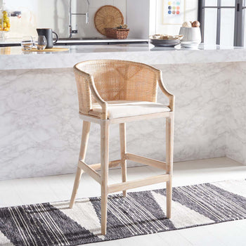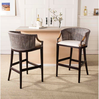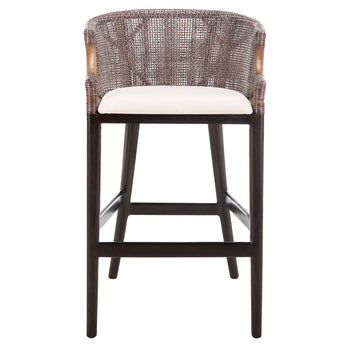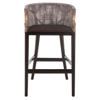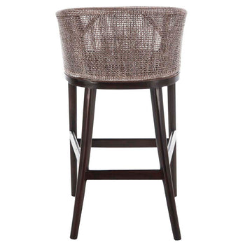 Inspired by the secret hideaways in exotic locales, the Brando Barstool is a nod to the art and adventure of imbibing. Sleek lined mahogany legs beautifully support Brando's richly textured brown rattan back while its dark brown cushion ensures hours of comfortable glass clinking.
