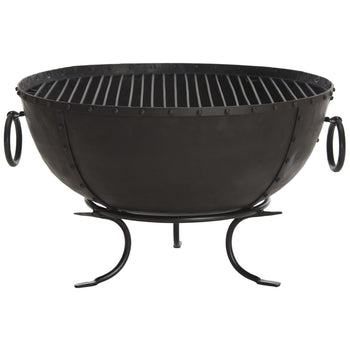 The timeless beauty of a Roman vessel inspired the wood burning Brazil fire pit in black iron. With classic ring handles and pedestal base, the kettle style tub exudes old world charm, and makes a dramatic display on chilly nights year round.