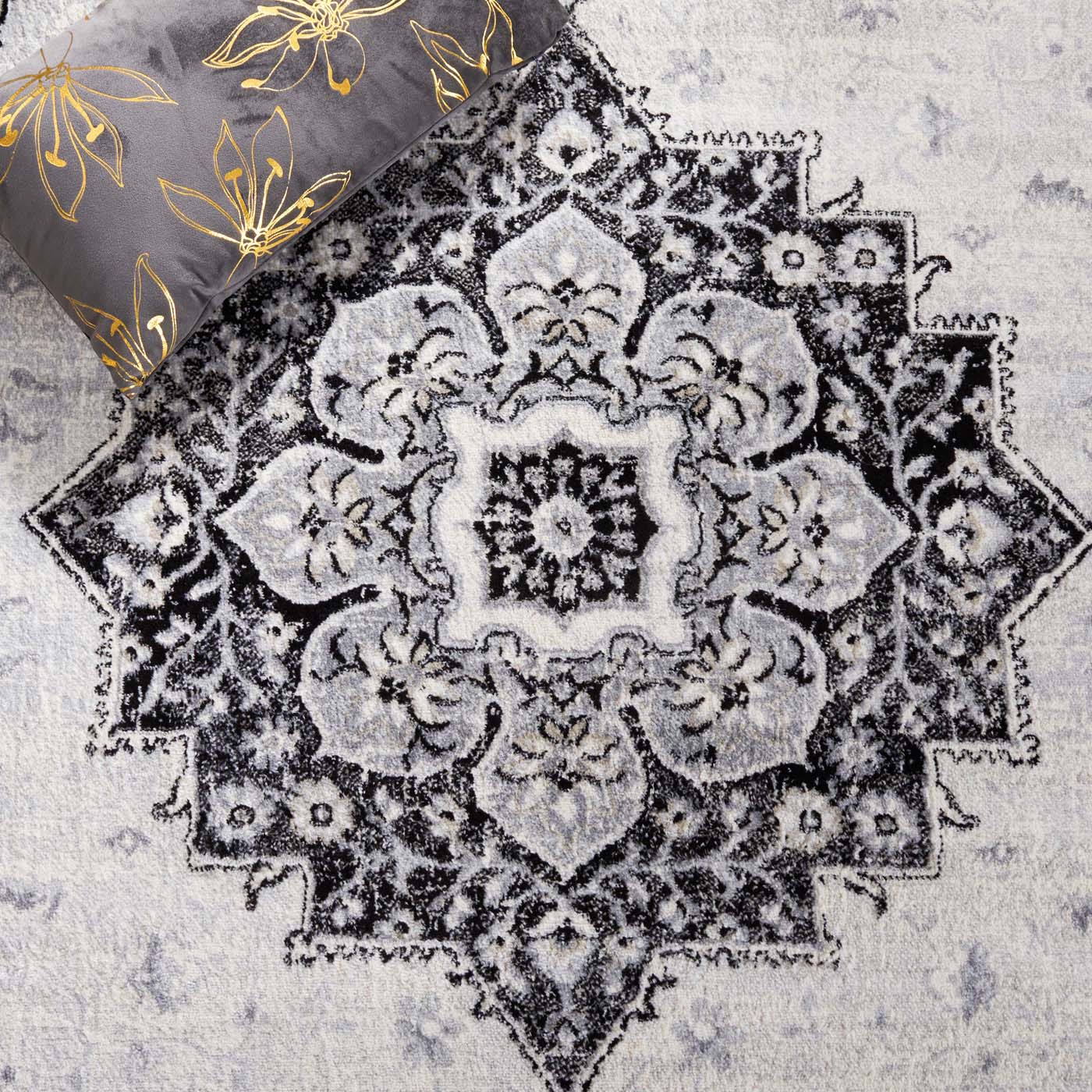Drawing inspiration from the image, the pattern on the rug features a subtle yet intricate medallion motif, bordered with a beautifully detailed frame that enhances its allure. Each element of the design contributes to a harmonious and inviting atmosphere, making it an exceptional choice for those who seek to create an elegant and welcoming environment.