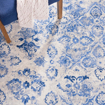 Elevate your home with the timeless sophistication of our Transitional Style Runner Rug, meticulously crafted in the enchanting hues of blue and ivory. This exquisite 2' X 9' runner brings a touch of elegance to any hallway or narrow space, while its 3/8" pile height ensures a comfortable underfoot experience without compromising on ease of door movement.